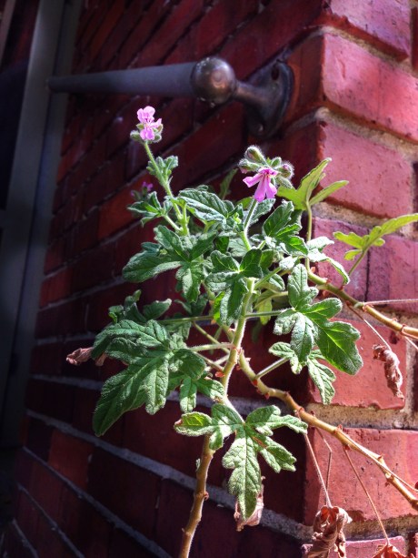 A potted rose geranium lives on my back stoop. Surprisingly.